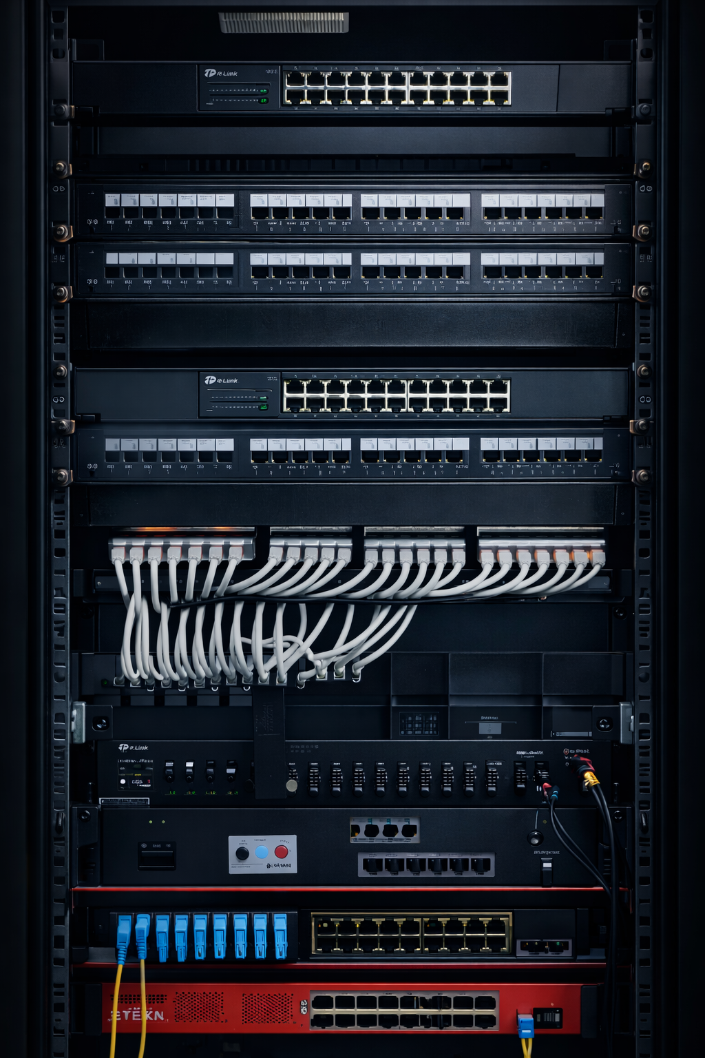 Düzenli kablolama ve etiketleme ile yüksek performanslı ve sürdürülebilir ağ altyapısı oluşturulmuştur